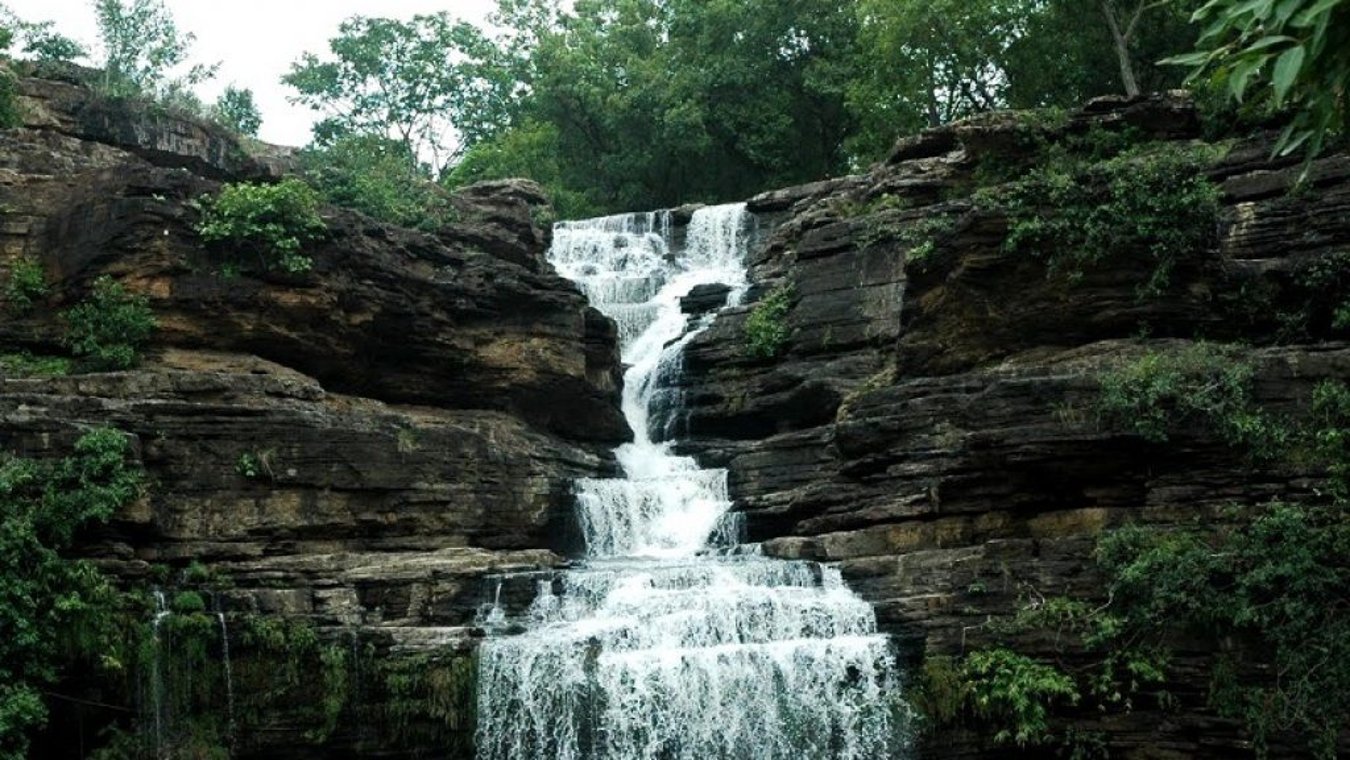 Hidden within Panna National Park, these 30-meter falls are named after the Pandava brothers from the Mahabharata epic and offer a refreshing escape surrounded by lush greenery and natural pools.